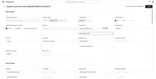 5. You will notice most of the basic and charge details will be pre-filled and get carried forward from the won inquiry.