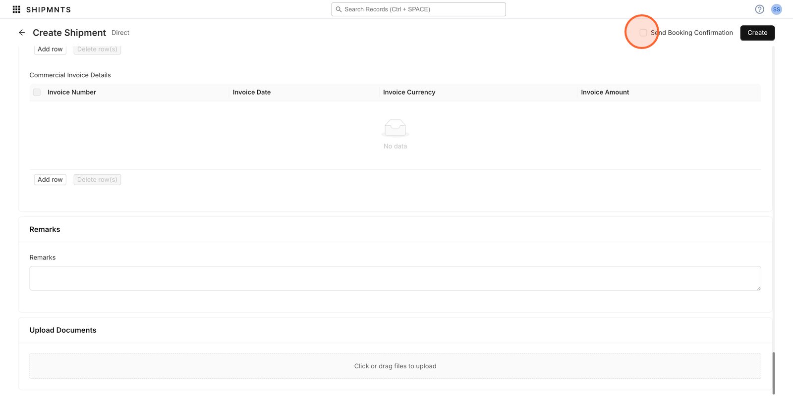 28. Click Create to finalize and submit your shipment booking.